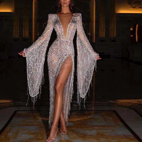 Sexy V Collar Lace Floral Embroidery Maxi Dress Eveing Dresses