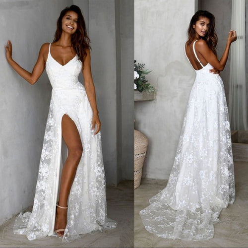 Wedding Bride Sling Dress White High Slit Evening Party Women