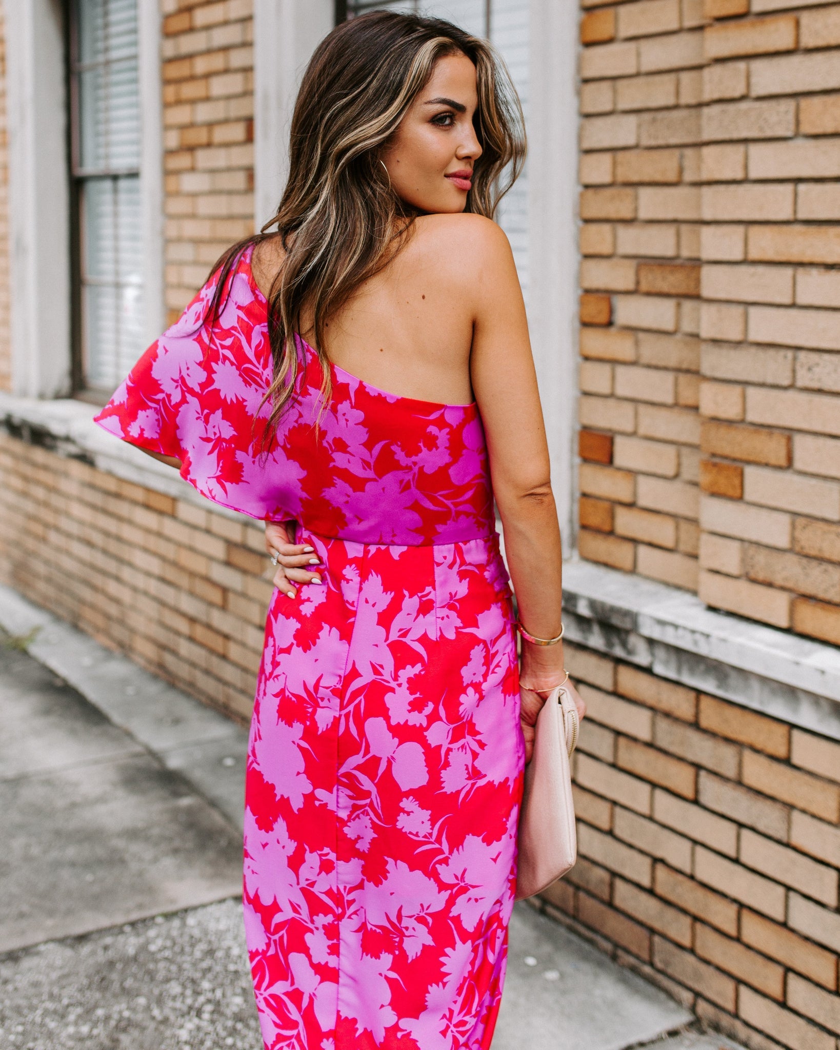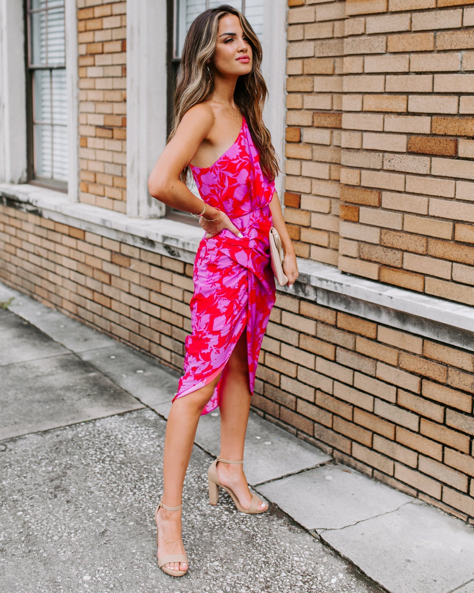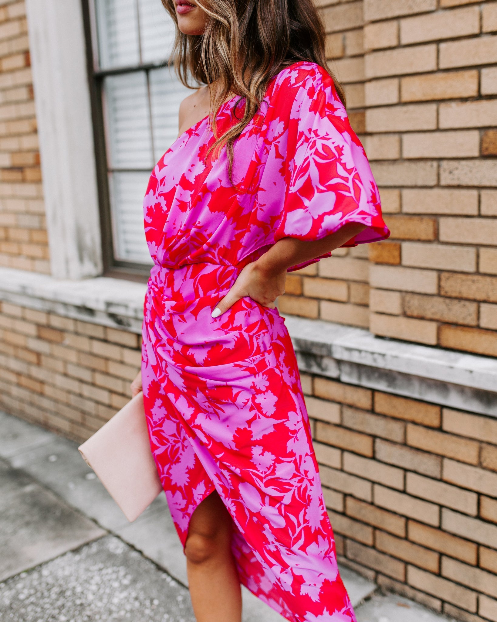 They won¡¯t be able to stop staring when you walk by in the Addicted To Love One Shoulder Midi Dress! This gorgeous silhouette features a floral print in red and magenta on a softly ruched and draped design. Featuring a one shoulder and sleeve neckline, structured waist and an overlapping midi skirt. A glam ensemble that¡¯s sure to steal their hearts! Finished with a lined body and concealed side zipper closure.