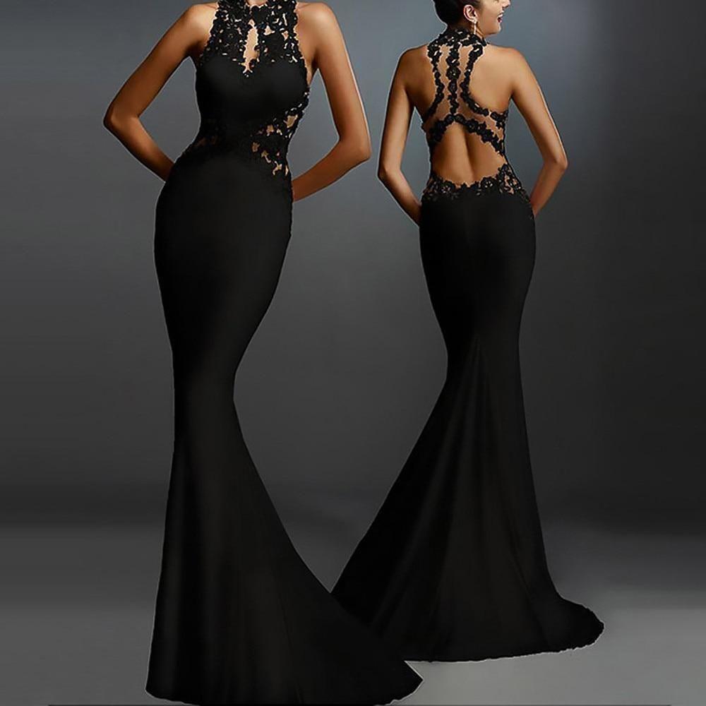 Season: SummerNeckline: HalterWaistline: empireSleeve Style: RegularDresses Length: Floor-LengthDecoration: NONESleeve Length(cm): SleevelessPattern Type: SolidSilhouette: Fit and FlareStyle: CasualMaterial: PolyesterGender: Women