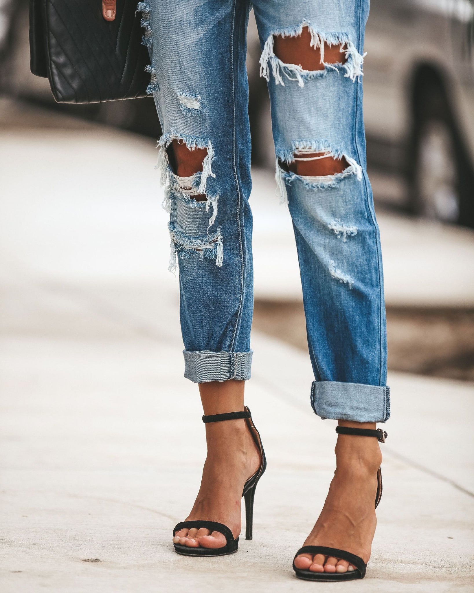Our favorite and best selling denim is back in action! The Crawford Boyfriend Denim is a style and wash you will love and live in! The perfect medium wash with on trend distressing, a relaxed fit and easily cuffed style. The frayed mid rise fit of this denim makes them chic with heels or sneakers. Easily roll them or wear them longer. Made from our best selling brand, these divinely soft, stretchy and impeccably detailed boyfriend jeans are the perfect Spring neutral! We especially loved them paired with a heel for date night. A best selling fit with the perfect relaxed style, stretch and fit! Styled with our Lorell Clutch.