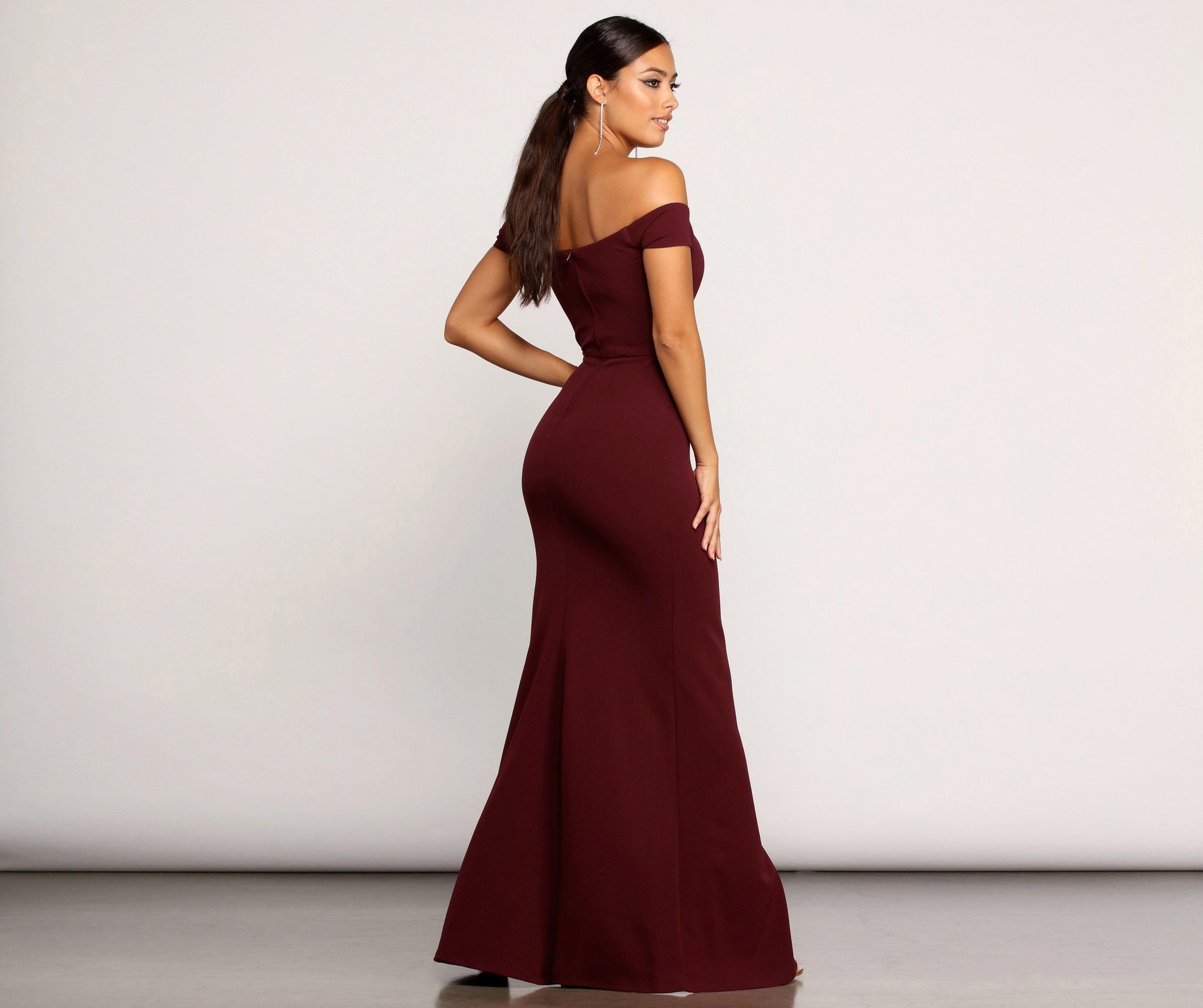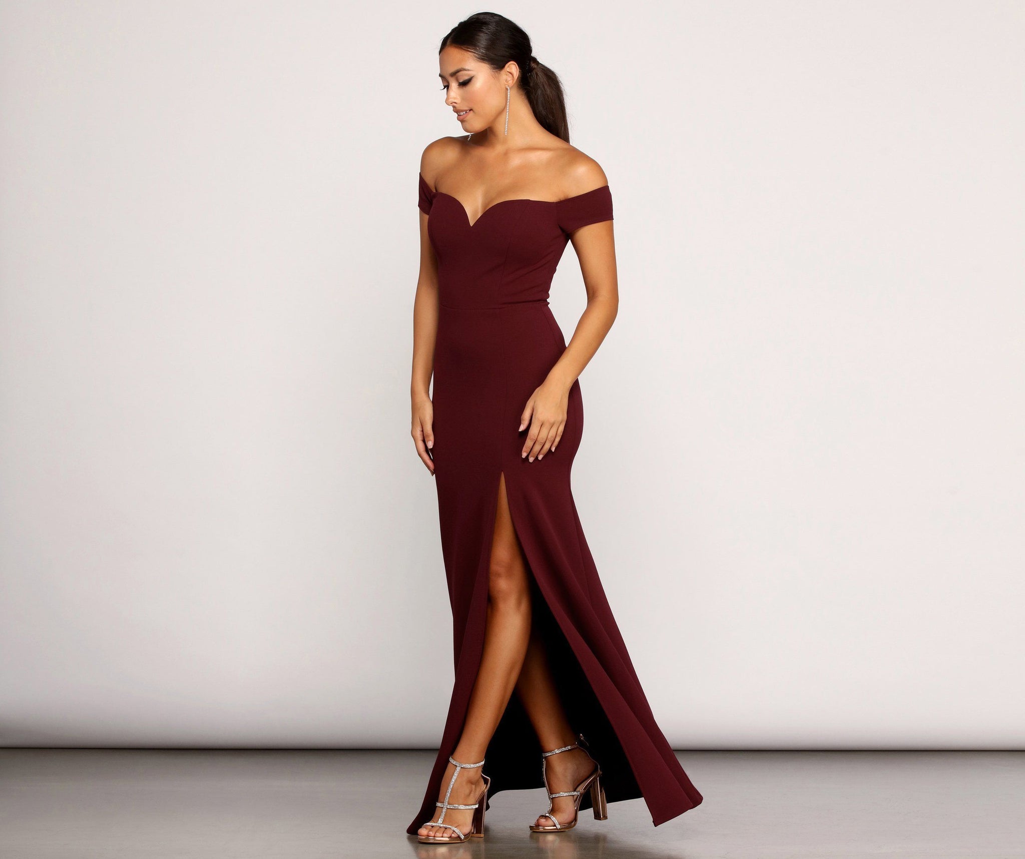- Curve-Hugging Floor-Length Silhouette With High Side Slit