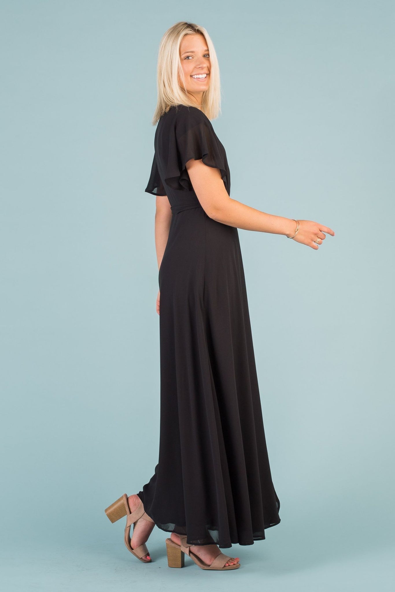 It’s no secret that our Naples Flutter Sleeve is a favorite among our Called to Surf shoppers. The delicate chiffon material and tie belt make this bridesmaid classic a flattering look on any body type. Includes a fully lined body that comes in a variety of colors.