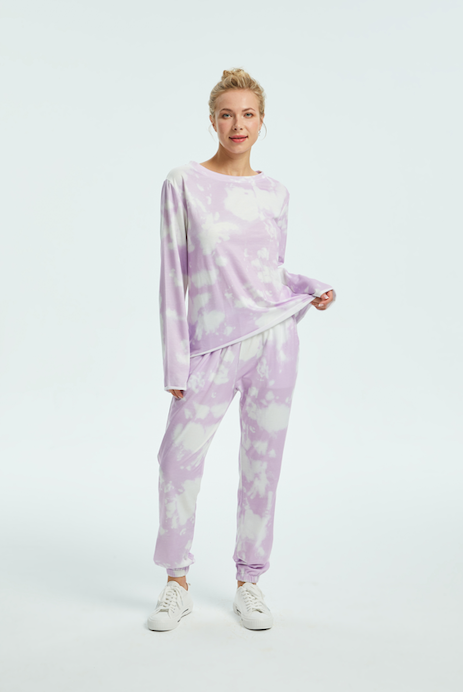 //Best Seller//New Color// Our Shoot For The Sky Tie Dye Pullover is so cute and casual! White clouds of tie dye splash across the lavender sweatshirt. Designed with a crew neckline, long sleeves and raw cut edges to enhance the look. Pair this soft pullover with the matching joggers and sneakers for a cool casual look! Styled with the Chloe Mini Necklace, The Buddha Wheel Necklace, Shoot For The Sky Pocketed Tie Dye Joggers, Glisten Up Faux Leather Sneakers and the Highland Bag.