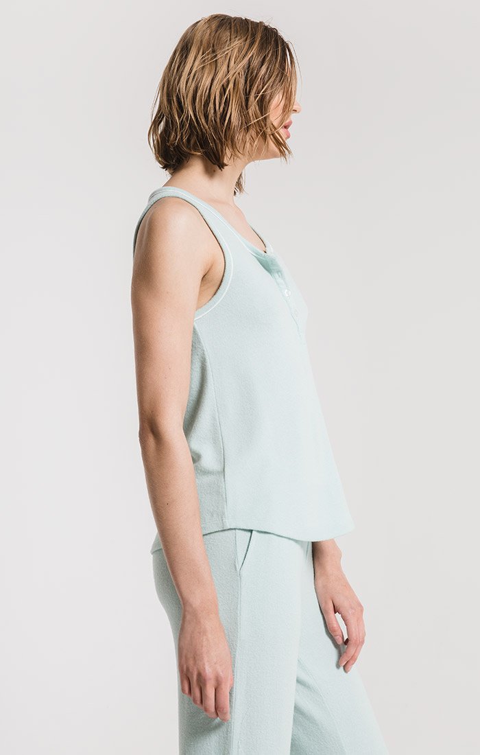 This is part of our Luxe Lounge Collection — crafted from a lightweight, oh-so-soft fabric made for ultimate comfort. Featuring a button-up neckline and contrast piping, this sleepwear tank pair best with our matching shorts and pants.