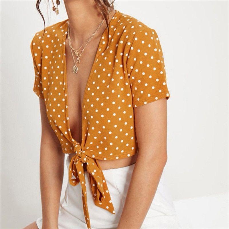 • Load image into Gallery viewer, Tie Front Deep V Neck Crop Top