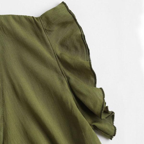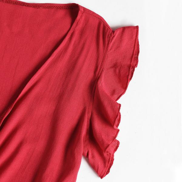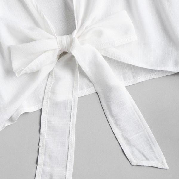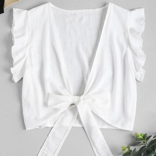 The chic summer look starts with the Top. It is made from lightweight woven fabric with pretty ruffles hemline. Feature a plunging neckline and tie at center. Complete the look with high waist shorts or skirt!