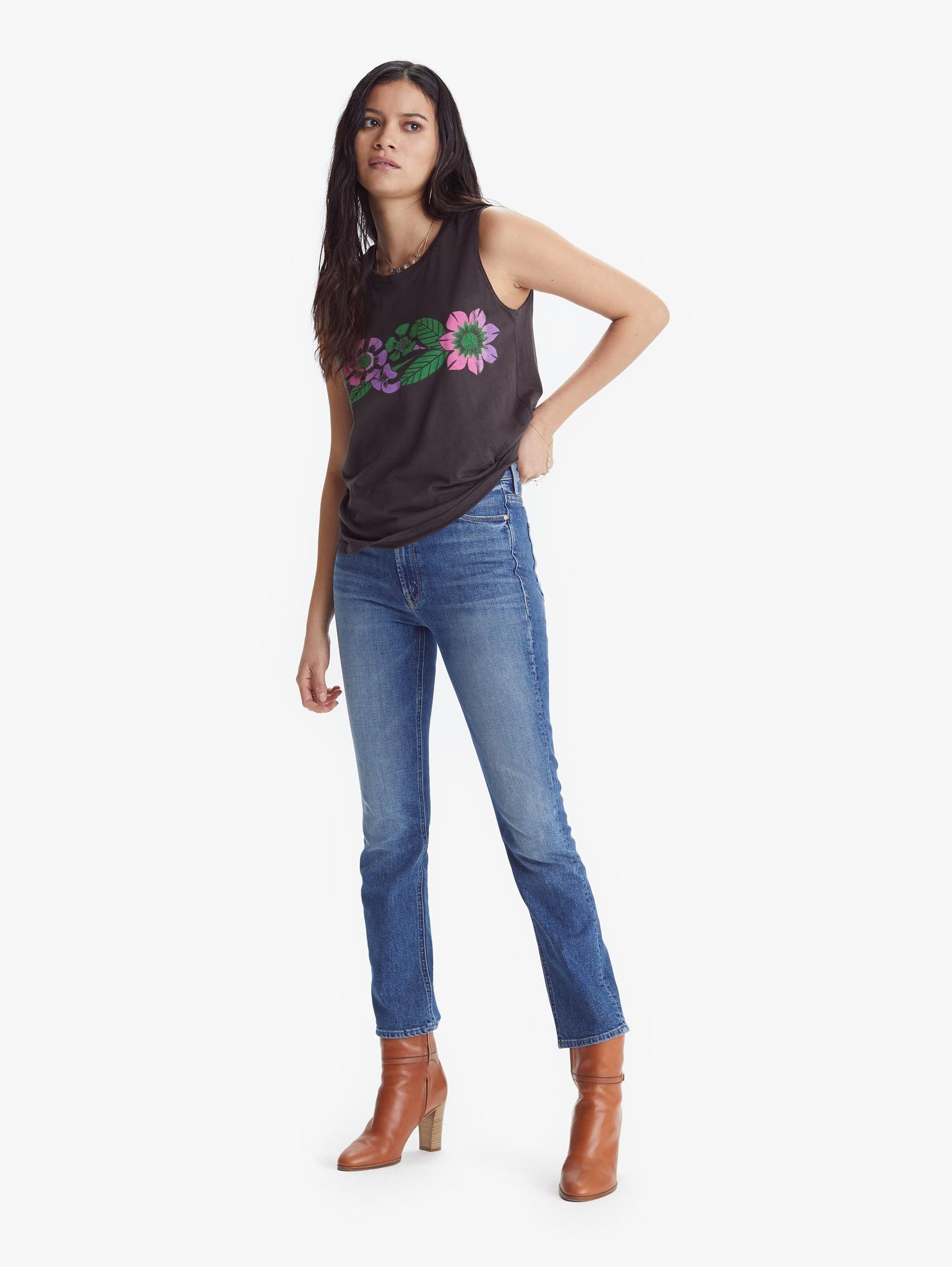 Tropical breeze. Cotton muscle tank from XiRENA with a floral graphic across the chest. Made in Los Angeles. Style No. T695-611-NOC, X03637.